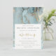 MODERN AQUA MULLVAD BLÅ GULD AGAT BRÖLLOPSINVITATI TACK KORT