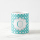 Modern aqua, vit polka punkt mönster monogram kaffemugg