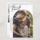 Upplev magin i din speciella dag med personlig bröllop tack vare ditt kort och visa ditt favoritögonblick som fångats i tid. Med det här eleganten förvandlar du det markerade bröllop-fotot till ett fantastiskt centerstycke, omgivet av en smakfull typografi som kompletterar ditt unika stil. Perfekt för tacksamhet till dina gäster, varje kort kan anpassas med ditt hjärtliga budskap, vilket gör att du kan biet i ditt glada firande samtidigt som du uttrycker din uppskattning. Vare sig du väljer en romantisk solnedgång, ett uppriktigt skratt eller en klassisk attityd, är det här tackkortet en vacker keepsaké som både du och dina gäster kommer att uppskatta i åratal för komen.