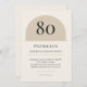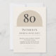 Warm neutral minimalist arch birthday invitation with modern typography. Age name date time location and RSVP are fully editable so you can customize for any 80th celebration and print or mail with ease.