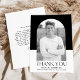 Ett enkelt och snyggt-studenten-tack som du har med dig student-fotot inuti en båge ram med svart och vit färg-blockbakgrund. "Tack" visas i svarta, moderna bokstäver med student namn, skola och studenten som visas nedan. Tack för fotot i studenten går du tillbaka till visningen för det skrivna eller handskrivna meddelandet.