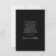Den vackra enkelheten och artismen i stil gör att den moderna bröllop tack vare kortdesignen med tilltalande drag. Den har en fotomall på kortets framsida som överför det önskade fotot. Det finns en textmall på kortets framsida som kan anpassas till bridens och gruppens datum namn och bröllop. På baksidan av detta kort finns ett provtackmeddelande som du kan skicka som skriven eller personlig använda med din formulering och bruden och brudgummens namn. Visa här med chicens svarta bakgrund, det här kortet finns även i andra färg.