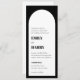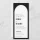 Den här moderna båginbjudan har fet typografi. Utformningen är svart och vit. Det finns en QR-kod på baksidan, vilket gör att inbjudan blir allt-på-ett. Elegant och enkel.