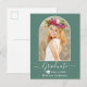 Modern Arch Photo Frame - Trendy Calligraphy Script - Photo Graduation Announcement Postcard - Eucalyptus Green - Graduation Cap