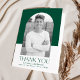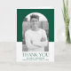 Ett enkelt och snyggt-studenten-tack som du har med dig student-fotot inuti en båge ram med grönt och vit färg-blockbakgrund. "Tack" visas i grönt med modernt brev med student namn, skolan och studenten som visas nedan. Insidan av fotot med tackkortet studenten ger utrymme för ditt skrivna eller handskrivna meddelande.