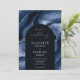 Den här moderna konstruktionen har en mörk blått bågform på en bakgrund av marin blå vattenfärgad agat som trimmas med silver faux glitter. Ord "bröllop" visas i ett vitt skript i elegant. Anpassa inbjudan med namn till bruden och brudgummen i en kombination av serif- och sans serif-typografi och bröllop-detaljer i kursiv stil.