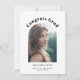 Den här annonseringsdesignen för stil studenten har en bågformad fotomall som du kan anpassa med student-fotot. Anpassa texten till namn, namn och klassår. Formgivningens baksida är täckt av ett modernt grått- och vitt alabaster marmor mönster.