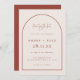 Modern Arch Tying Knot Bröllop Terracotta Script Inbjudningar