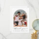 Minimal tack från bröllop för att du fick ett kort för nyfödda som innehöll ditt foto i ett modernt bågverk i bild ram, "tack" i ett elegant-skript och ditt Mr & Mrs namn och bröllop-datum i enkel typografi. Tvärtom kan du anpassa ett tackmeddelande och lägga till ditt första namn som en namnteckning.