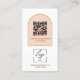 Modern stil rosa välvd fotobakgrund med script-typografi med logotyp, Qr-kod sociala handtag, e-post, telefonnummer och webbplatsalternativ . Perfekt elegant minimalistisk kort för nageltekniker, sminkartist, frisör, coacher och konsulter.