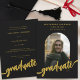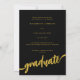 Fira din dotters examen med stil med detta eleganta svarta och gyllene examenskort, perfekt för studenter som går ut gymnasiet, högskolan eller universitetet. Denna moderna och trendiga examensinbjudan med valvfoto har en sofistikerad svart bakgrund med lyxig gyllene kalligrafi i skrivstil - en iögonfallande kombination som framhäver denna viktiga milstolpe. Anpassa designen med din examenstagares favoritfoto och lägg enkelt till personliga evenemangsuppgifter med den användarvänliga, redigerbara mallen. Oavsett om du planerar en examensfest, öppen hus eller skickar formella underrättelser, är detta utskrivbara examenskort ett vackert sätt att dela hennes prestation med vänner och familj. Designad av konstnären Catherine Sweetman, denna personliga examensinbjudan kombinerar klassisk elegans med modern stil och skapar ett minne du kommer att värna. Perfekt för examensunderrättelser 2025, seniorfotokort, svarta och gyllene examensinbjudningar och anpassade examensfestinbjudningar för döttrar. Ett perfekt val för föräldrar som söker stilf