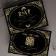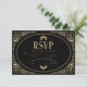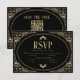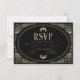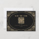 Ett modernt kort för bröllop OSA och chic med faux guld deco art gräns och vintage typsnitt i svart bakgrund med QR-kod för osa.