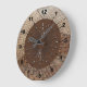 Modern Art Deco Brown Shades Clock. Konst deco-inspirerad design med yttre cirkel i faux-träkorn och innerbrunt område har steampunk design. Underbar för infartshallar, matsalar/bostadsområden eller för gåsgåvor. Vi har en lång rad väggur i stilar som sträcker sig från traditionella till elektiska.