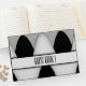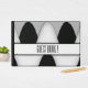 Unik svartvit utformning bok med namn för händelsen och datum i bok ryggraden.