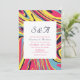 Fusion av retro och modern design med färgstark, snurrande marmor abstrakt mönster personlig bröllopsinbjudan. Rosa lila gult färg palett. Det här kortet är enkelt att redigera. Om du behöver hjälp med att anpassa den här produkten eller om du behöver fler matchande produkter för den här samlingen ska du vänligen meddela mig via Zazzle.