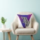 Blast off into a world of comfort with this vibrant, modern astronaut throw pillow. Featuring a sleek, hand-drawn astronaut floating against a stunning purple and magenta galaxy nebula, this design is housed in a sharp, geometric triangle frame for a contemporary look.