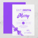 Modern ät, drick gläd dig jul lila band inbjudningar