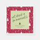 Modern kalligrafi "ät drick + var gift" överliggande fyrkantig gulgrön med julgrönsaksmönster röda pappersservetter.