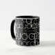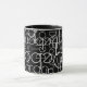 Lägg till ditt eget namn i mallen för att skapa ett speciellt kaffe mugg. En mönster av namn tryckt med tunt vitt teckensnitt stil över den svarta bakgrunden... en modern design som är lätt att anpassa för morgonnöjesstunder.