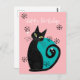 I mitten av århundradet har vi ett modernt vykort med en atomisk katt med återdesign av paletten inslag och blått och rosa färg.