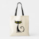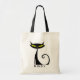 Den här personligen till väskan har en modern "atomisk" svart katt i mitten av århundradet med stort gult ögon och ett glatt svan. Du kan enkelt ändra textstavningen. Teckensnittet stil, färg och storlekt med knappen Zazzle Personalize.