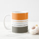 Det moderna kaffet mugg har en färgstark mönster i orange- och grått-skuggor. Anpassa den med ett namn i vitt typsnitt vid grund.