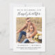Modern förlovning-information med ditt foto och "Vi börjar lyckligtvis allt efter" i en blandning av minimal typografi och ett snyggt-skript. Anpassa med ditt första meddelande om namn och en anpassningsbar förlovning, till exempel om du vill vara inställd för ett bröllop-datum.