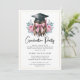 Modern Avslappnad Script Studentfest-inbjudan - Modern skripttypografi med minimal design. Snygg brunette student med rosa coquette-båge och accentuerad med rosa blommor. Kortet accentueras med ett tunt guld gräns. Inbjudan till studentfest ingår i en samling. Vårt vykort är ett bekvämt och mer ekonomiskt sätt att skicka ut dina inbjudningar. Vi uppmanar dig att besöka ditt postkontor för att bekräfta rätt hastighet för porto. Vi skulle hata att era vackra inbjudningar återlämnas till er för felaktig porto. Tack för tittar och Grattisar till Student! Om jag kan hjälpa till, tveka inte att nå bev@magnoliaandthistle.design.