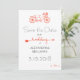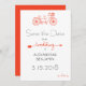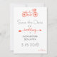 Den moderna contemporaryn Finare avslappnad bröllop spara datum i rött och vitt med en tandemcykel, pil och hand skriven som ett skript.