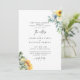 Inbjudan till Blommigt för solrosfärgat vattenfärgsbröllop. Vit bakgrund och sidbakgrund. Båda uppsättningarna med föräldrar.