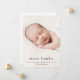 Ett vackert meddelande om foto av nyfödda bilder som visar det moderna fotot av namn och fullt som blöder lodrät porträtt. På baksidan finns ytterligare två fotomaterial med ett stort namn-huvud och ett personligt meddelande från familjen.