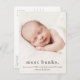 Ett vackert meddelande om foto av nyfödda bilder som visar det moderna fotot av namn och fullt som blöder lodrät porträtt. Baksidan har en extra fotopunkt, ett stort namn-huvud och ett personligt meddelande från familjen.