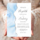 Den vänstra kanten på denna eleganta moderna bröllopsinbjudan har en pastell babyblå akvarellagat kant med falskt silverglitter. Den anpassningsbara texten kombinerar handskrift, kopparstick och kursiv stilar i kolgrått på vit bakgrund. Baksidan har en matchande babyblå och silver agat design.