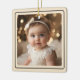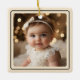 Modern Baby Photo jul Champagne Guld Skript Ceramic Ornament: Den här eleganta, moderna prydnadsföreställningen firar baby:s första jul, där den ena sidan visar ditt favoritfoto från baby som är täckt av en svart kontur. Den andra sidan har den söta texten "Tiny händer, small foot, julminnen oh so gullig" tillsammans med en personlig namn i ett typsnitt och året, omgiven av en minimalistisk svart linje. Perfekt för nya föräldrar att högtidlighålla minnet av en baby i första julhelgen och lägga till snyggt och känslosam beröring till Julgran. Ladda upp ett favoritfoto från baby för ena sidan och lägg sedan till namn och år bakåt. Klicka på "Anpassa den här mallen" om du vill ha en keepé som håller värdefulla julminnen.