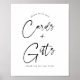 Styr gästerna med enkel chic med hjälp av det här moderna svarta och vita kort- och presentmärket. Perfekt för att ta emot bord vid barnduschen. Den här minimalistiska designen ger en snyggt och hjälper gästerna att veta var de ska lämna sina tankeväckande kort och presenter. En ren, tidlös accent som är perfekt för både gender-neutralt- och matade babyduschar.