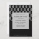 Gör ett elegant påstående med denna moderna inbjudan till svartvitt och silver, perfekt för en grupp som uppskattar tidlös stil och sofistikerad design. Med ett fet geometriskt mönster och en minimalistisk typografi anger denna inbjudan tonen för en uppskalad nattutgång eller en snyggt cocktail firande. Den vassa svarta bakgrunden och silver-tonad beskriver ge den som en förfinad Art Deco-vibe, perfekt för slungor, taktopp-pub eller privata evenemang. Helt anpassade med information om datum, plats och OSA i party, är den här designen perfekt för klassiska kandidatpartier med en modern tvist.