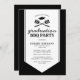 Sommarbq-inbjudningar med studentfest med en klassisk svart bakgrund, ett vitt studenten-streck, en pantpinne, barbecue utensils och en modern textmall som är lätt att anpassa. På baksidan finns en rustik plaid mönster.