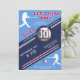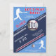 Modern födelsedagsinbjudan med basebolltema. Fira i stil med denna snygga baseboll-inspirerade födelsedagsinbjudan! Med en färgskala i marinblått, rött och vitt, kraftig text och realistiska baseboll-grafik är denna sportiga design perfekt för alla basebollfantaster. Kortet visar dynamiska spelarsilhuetter, en 3D-baseboll och randiga detaljer. Oavsett om det är för en kids-fest eller en vuxen basebollfantast är denna premium- och anpassningsbara design en fullträff för alla födelsedagsfiranden!