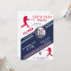 Modern födelsedagsinbjudan med basebolltema. Fira i stil med denna snygga basebollinspirerade design för födelsedagsinbjudan! Med en färgskala i marinblått, rött och vitt, fet bokstavsstil och realistiska baseboll-grafik är denna sportiga design perfekt för alla basebollfantaster. Kortet visar dynamiska spelarsilhuetter, en 3D-baseboll och randiga detaljer. Oavsett om det är för en barnfest eller en vuxen basebollfantast är denna premium- och anpassningsbara design en fullträff för alla födelsedagsfiranden!
