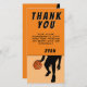 Modern basketboll sporrar till födelsedagstack. Basketbollens födelsedag tack vare ett tackkort, namn och en svart basketbollspelare, silhouette. På baksidan av kortet är en basket med namn. Anpassa kortet med namn och din text. Underbar för barn som kärlek basketboll och sport och vill tacka sina vänner och familj för en gåva.