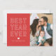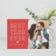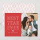 Skicka dina nära och kära ett stilrent semestern fotokort denna högtid! Det moderna fotokortet har en röd bakgrund, frasen "Bästa År Någonsin" i en trendig teckensnitt, platshållare för din anpassade text och foto, och ett rött och vitt geometriskt mönster på baksidan av kortet.