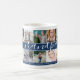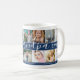 Modern fotokollage-kaffet mugg med en snyggt fotokollage-mall, med bilder som lätt laddas ned från din mobila dator eller dator, texten "Best Grandpa någonsin" i kalligrafiskriptet för elegant och namn/s för barnbarn i ett marint blått block som kan ändras till valfritt färg. Gör en underbar keepsaksgåva till din morad.