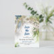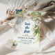 Ett modernt sätt att spara datumkortet bröllop, som är perfekt för strand eller bröllop, som innehåller en tropisk löv från handflatan, en trästrandskylt, vackra strandbrunnar och akvatisk blåstjärna och vit stjärna. Datummallen sparas i detalj med havets blå accenter och är lätt att anpassa.