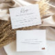 Enkel design med modern kalligrafi och typsnitt. Det finns en sångförfrågan längst ner för att få dina gäster att dansa! Baksidan har text för att svara online via bröllopswebbplatsen. Det finns två pumpaillustrationer längst ner i orange för höstsäsongen.