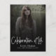 Detta moderna begravningskort går utöver traditionella format och låter dig skapa en meningsfull och personlig hyllning. Manus för 'Firande av Liv' är ett lager över fotot och svart gradient.