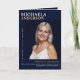 Detta eleganta minnesprogram har en sofistikerad svart och guld design, som skapar en tidlös hyllning till en älskad person. Framsidan visar en vacker porträttbild inramad av raffinerad typografi, med namnet och livsdater elegant utskrivna bredvid den anpassningsbara frasen "För alltid i våra hjärtan". Inuti programmet finns en välorganiserad ordning för ceremonin, ett gripande dödsrannsavsnitt med utrymme för en personlig hyllning, och ett foto för att hedra deras minne. Baksidan har ett tackavsnitt, där man uttrycker tacksamhet till dem som gav sitt stöd, tillsammans med en lista över kistbärare och bidragsgivare. Det klassiska färgschemat och den smakfulla layouten gör detta program till ett meningsfullt minne, som ger tröst