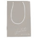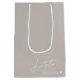 Specialdesignad brudtärna presentpåse med modern minimalistisk beige och vit design.