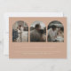 Modern Beige Flerväggig Foto Båge Bröllop Underrättelse. Anpassa med fyra av dina favoritbröllopsfoton med en på framsidan och tre på baksidan i eleganta små valv. Anpassa ytterligare med brud och brudgums namn, datum för bröllopet och din elopementsmeddelande till vänner och familj.