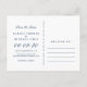 Varm och återhållsam, denna spara datum-kort har en mjuk beige rubrik med parets namn och bröllopsdatum i rik marinblå typografi. Tre anpassningsbara fotopaneller visar dina favoritbilder av paret eller förlovningsbilder i en ren triptyklayout. Baksidan av det postkort som kan skickas med posten innehåller adressfält. Ett mångsidigt och elegant val för neutrala eller jordnära brölloppsfärgpaletter.
