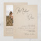 Överraska dina vänner och familj med dessa moderna och stilrena bröllopsinbjudningar med delikat kalligrafisk text, anpassad bild och QR-kod. Lägg enkelt till din egen information och bild genom att klicka på alternativet "personalisera".